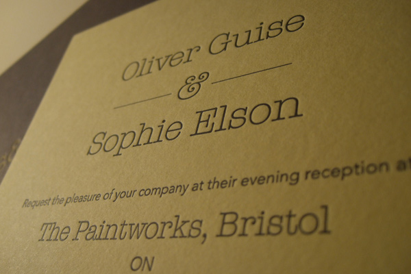 Wedding Invitations & Thank You Cards printed dark grey ink with lemon foil on 540gsm colorplan duplexed dark grey/sorbet yellow