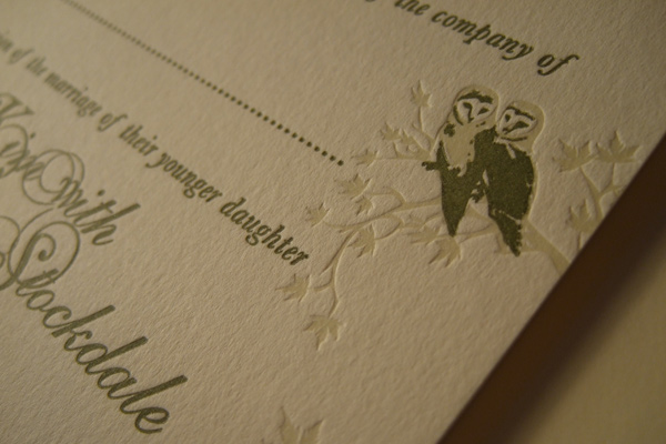 Invitations printed pantones 5807 & 5767 on colorplan 540gsm natural
