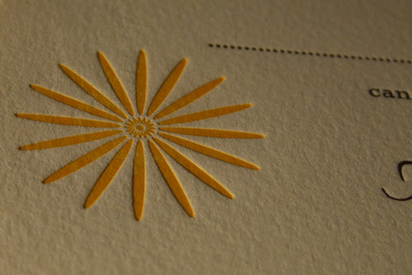 RSVP Card printed pantones 108 & 1535 on somerset soft white 100% cotton, 300gsm