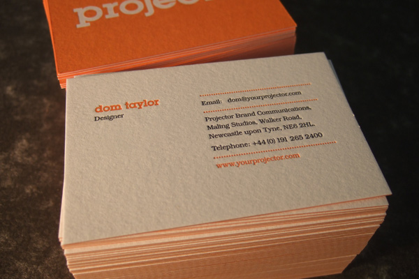 Business Card printed pantone black and 021 with white foil on colorplan duplex ice white/mandarin, 540gsm